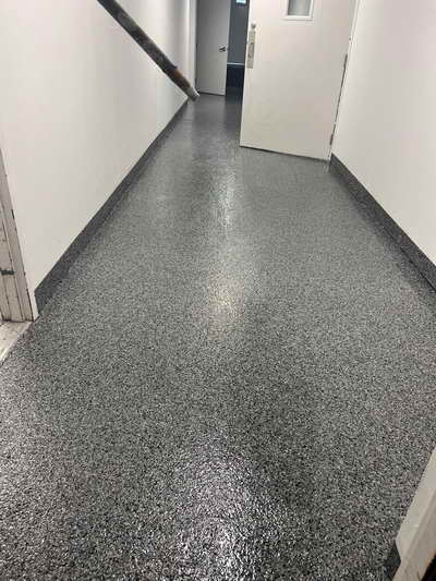Quartz epoxy is one of the most reliable and attractive flooring options for commercial bathrooms. The quartz epoxy flooring installed by RestoPro770 is a commercial grade type that combines a textured, slip-resistant surface with a smooth finish that withstands stains, odors and heavy wear and tear. These characteristics make our solutions an ideal option for a variety of spaces like office buildings, schools, retail centers and public facilities in Coconut Creek. With the busiest environment in mind, each installation is customized to your needs for the space. Our coatings are easy to clean, hygienic and engineered to resist everyday use for long periods of time.